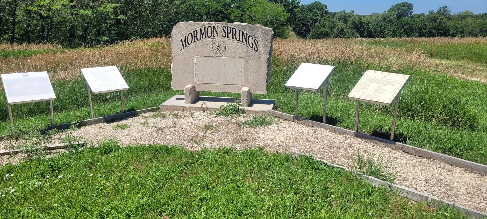 The Mormon Springs Monument in Washington County, Kansas, commemorates a vital stopping point for pioneers traveling the southern route of the Mormon Trail and the Fort Riley-Fort Kearney Military Road.