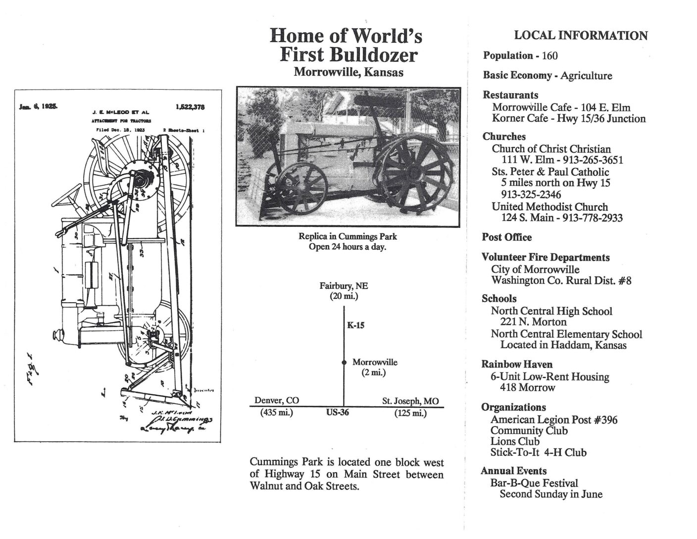 In 1923, a young Morrowville farmer named James (Jim) Cummings and a draftsman named J. Earl McLeod designed a front-mounted scraper blade for a tractor.